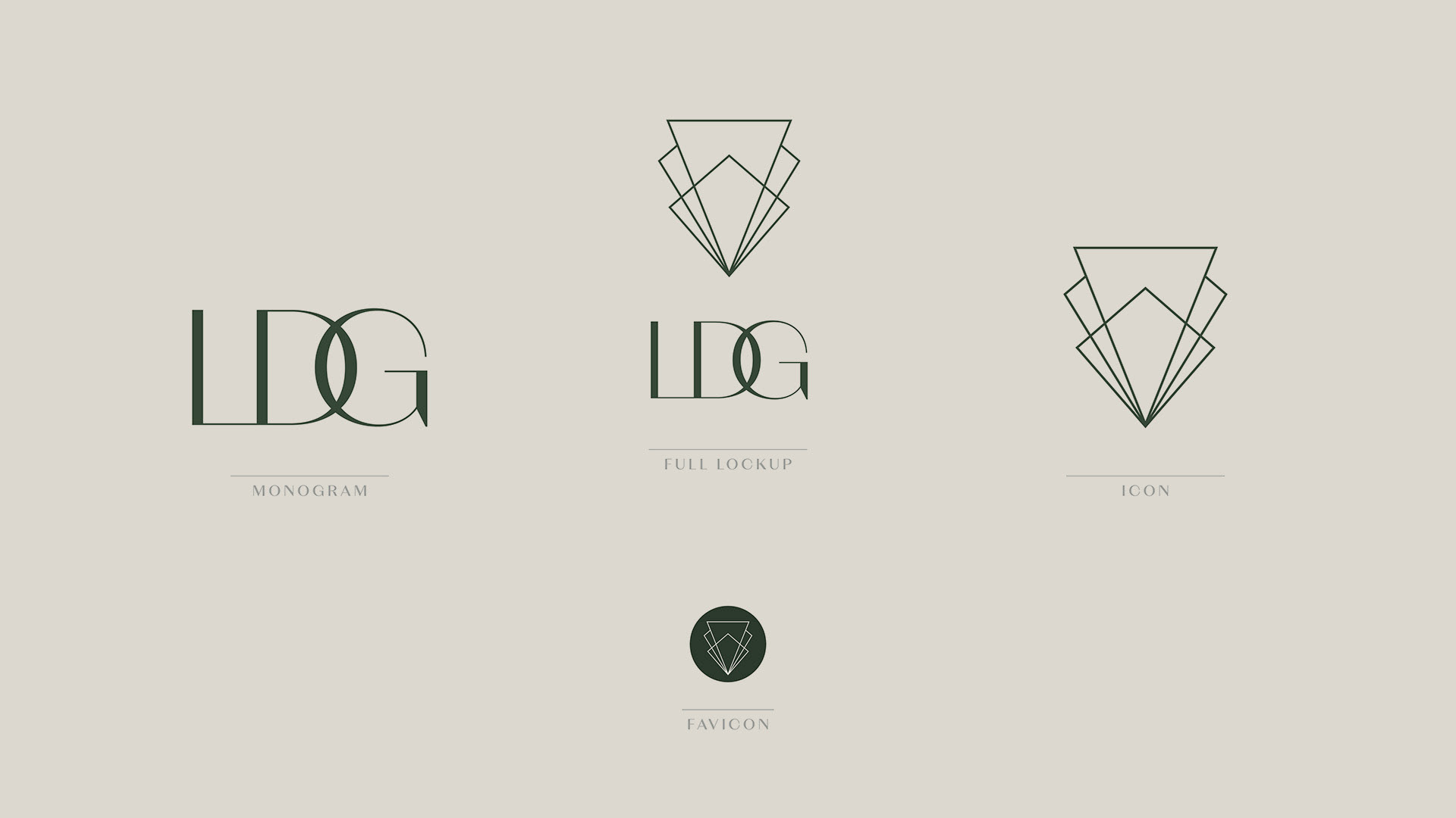 ↑ The Logo. The LDG icon has a rich history which I felt was important to maintain in their rebrand. The new version of the mark is a geometric, modern interpretation of the original art-deco style ‘fan’ which has been the LDG icon for many years prior.